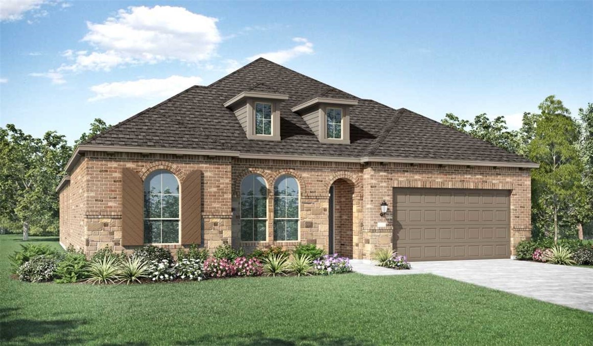 MLS# 1626527 - Built by Highland Homes - Ready Now! ~ Final opportunity to purchase a large single story, Highland Home, on a corner lot, in the model home park, cul de sac, close to amenities. This popular, open floorplan, offers 4 bedrooms, 3 and ½ baths, study, entertainment room, and a 3 car tandem garage. High ceilings and tall windows are Highland’s signature trademark, and allows for plenty of natural light. Many upgrades include white cabinetry, quartz countertops throughout, extensive hard surface flooring, built in Stainless Steel appliances and more. This is a thoughtful layout with study positioned off front entry, providing more privacy, for those working from home. One of four bedrooms includes a private bath, perfect for guests. Two secondary bedrooms placed off their own wing of the house, with a shared bath. The entertainment room gives extra space to relax, close to the family room and kitchen, convenient for friends and family. Dining area includes a charming window seat, for added sitting space. The large center island, at the kitchen, is open to the dining and family room. Master retreat has a beautiful bay window, looking onto the backyard, with a stone privacy fence at back of property. Master bath has a freestanding tub, with a separate shower, double sinks and a vanity area. Enjoy the extended covered patio, overlooking backyard which is 71’ wide x approximately 45’ deep, all usable space, with full sod and programmable sprinklers.