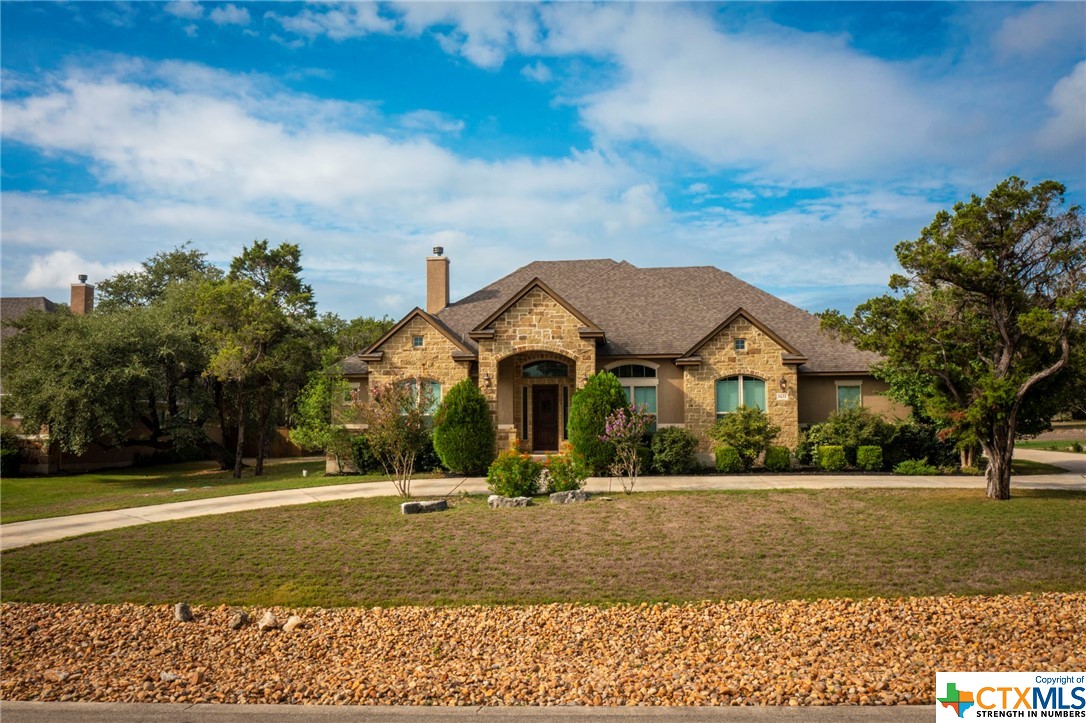 Beautiful one-story, 4 Bedroom/3.5 Bath home in Copper Ridge. High tray ceilings, open floorplan, huge kitchen with loads of custom cabinets/storage, large center island and plenty of counterspace. The secluded Master Suite, with a large and tranquil ensuite invites you to relax and release the pressures of the day. The spacious secondary bedrooms each have large walk-in closets and ample natural light! Front circle driveway provides additional visitor parking. Oversized 2.5 car side-entry garage. The pristine landscape of the large backyard invites you to make this your personal hill country oasis. 24/7 gated/guarded neighborhood is only minutes away on Hwy 46 from shopping, dining, entertainment and all that the New Braunfels area has to offer.